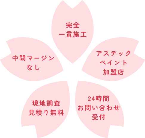 桜の花びらが5枚で形づくられているように、当方の強みも「5つの花びら」から成り立っています。